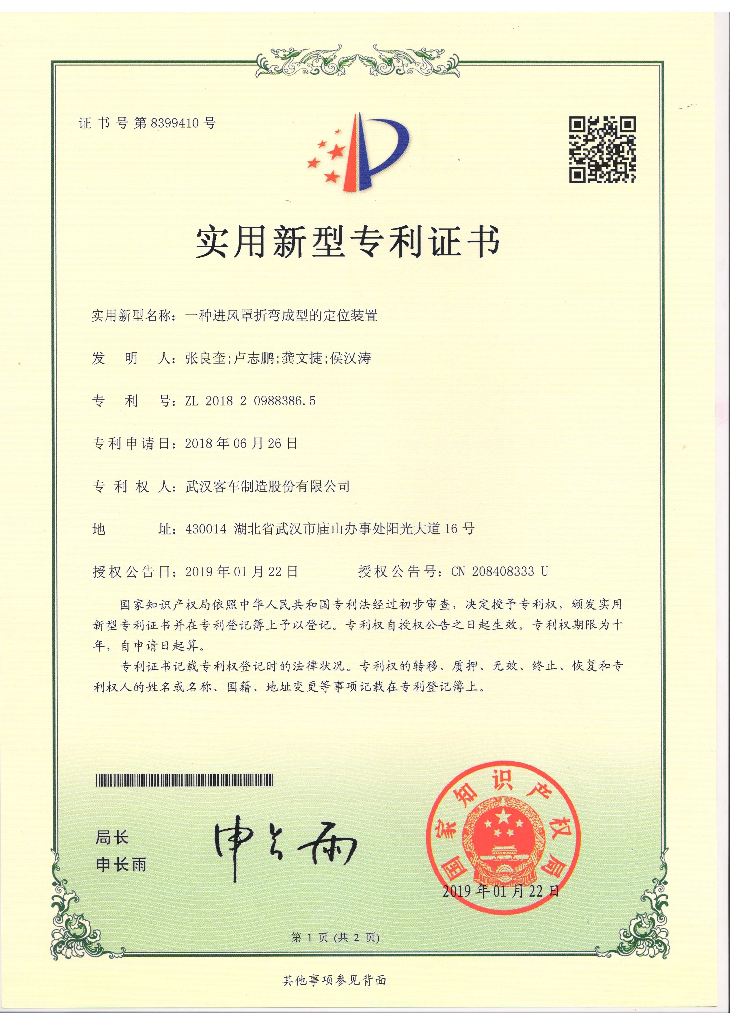 一種進(jìn)風(fēng)罩折彎成型的定位裝置